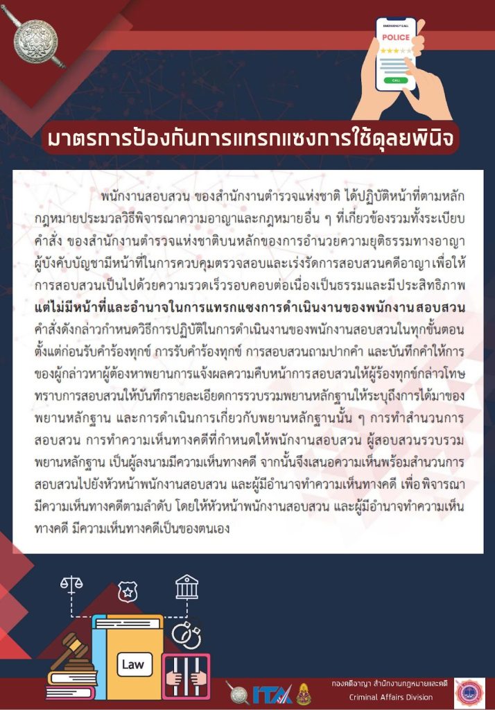 >>มาตรการป้องกันการแทรกแซงการใช้ดุลพินิจ สถานีตํารวจนครบาลทองหล่อ