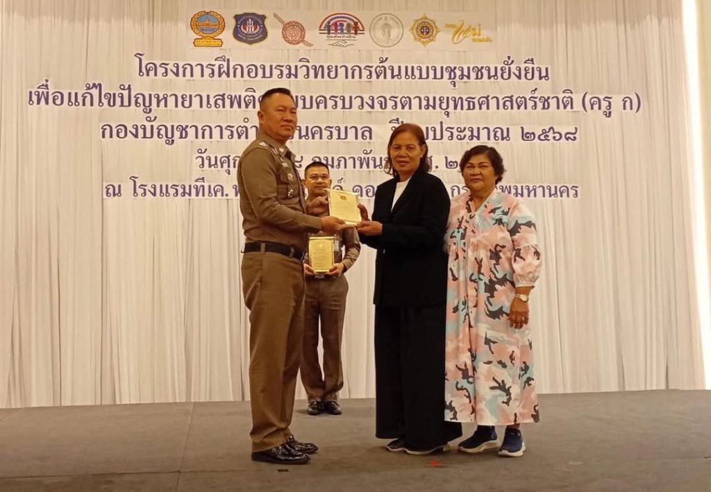เป็นตัวแทนชุดปฏิบัติการชุมชนบำบัดอย่างยั่งยืน เพื่อแก้ไขปัญหายาเสพติด แบบครบวงจรของ สน.ทองหล่อ