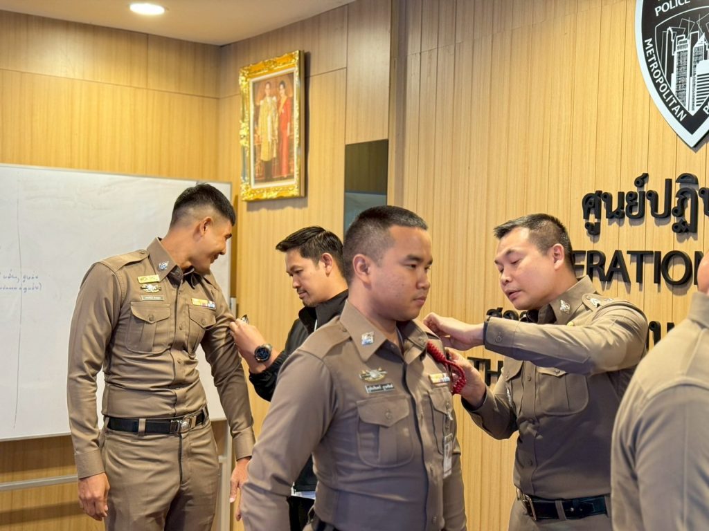 ประดับยศผู้ใต้บังคับบัญชา กรกฎาคม 4, 2568 โดย admin / ข่าวประชาสัมพันธ์,ข่าวกิจกรรม,ข่าวประชาสัมพันธ์ พ.ต.อ.รัฐธนนท์ เอกฐิติกุลพัทธ์ ผกก.สน.ทองหล่อ พ.ต.ท.อุทิศ สุดใจ รอง ผกก. (สอบสวน)สน.ทองหล่อพ.ต.ท.อัครพล ธนธรรม รอง ผกก.สส.สน.ทองหล่อ พ.ต.ท.ศักดิ์ดา เลขะพัฒนพล พ.ต.ต.กฤษฎา ซอประเสริฐสวป.สน.ทองหล่อ พ.ต.ท.สุวสันต์ ตรีเหลา สว.จร.สน.ทองหล่อ พ.ต.ท.สุริยา ศรชัย สว.อก.สน.ทองหล่อ พ.ต.ท.อรรถวุฒิ นิลแสง พ.ต.ต.พงษ์สันต์ วิยะรันดร์ สว.สส.สน.ทองหล่อ ร่วมเป็นเกียรติในพิธีประดับยศแก่ข้าราชการตำรวจ สน.ทองหล่อ ที่ได้รับการแต่งตั้งให้เลื่อนยศสูงขึ้น รวม 39 นาย เเบ่งเป็น – ยศ จ.ส.ต. เลื่อนยศเป็น ด.ต. จำนวน 12 นาย – ยศ ส.ต.อ. เลื่อนยศเป็น จ.ส.ต. จำนวน 16 นาย – ยศ ส.ต.ท. เลื่อนยศเป็น ส.ต.อ. จำนวน 5 นาย – ยศ ส.ต.ต. เลื่อนยศเป็น ส.ต.ท. จำนวน 6 นาย ณ ห้อง ศปก.สน.ทองหล่อ