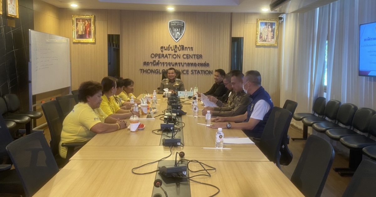 พ.ต.อ.รัฐธนนท์ เอกฐิติกุลพัทธ์ ผกก.สน.ทองหล่อ พร้อมด้วย พ.ต.ท.อัครพล ธนธรรม รอง ผกก.สส.สน.ทองหล่อ พ.ต.ท.อรรถวุฒิ นิลแสง สว.สส.สน.ทองหล่อ พ.ต.ท.ศักดิ์ดา เลขะพัฒนพล สวป.สน.ทองหล่อ ร.ต.อ.คมสรร ของพิมาย รอง สวป.สน.ทองหล่อ พร้อมด้วยเจ้าหน้าที่ตำรวจชุด สืบสวน สอบสวนสน.ทองหล่อ,เจ้าหน้าที่ตำรวจชุด ตชส.สน.ทองหล่อ ร่วมประชุม รับฟังแนวทางการปฏิบัติของรัฐบาล ร่วมวางแผนขับเคลื่อน ในการปฏิบัติ การกวาดล้างยาเสพติด “No Drugs No Dealers” โดยให้ชุมชนเข้ามามีส่วนร่วม และรับ ฟังปัญหาสถานการณ์ยาเสพติด ที่เกิดขึ้นภายในชุมชน ศปก.สน.ทองหล่อ โดยมีประธานชุมชน 3 ชุมชน (เป้าหมาย) 1.ชุมชนบ้านกล้วย 2.ชุมชนริมคลองไผ่สิงโต 3.ชุมชนอาคารทรัพย์สิน 26-7 เข้าร่วมประชุม ณ ห้องประชุมชั้น 3 สน.ทองหล่อ