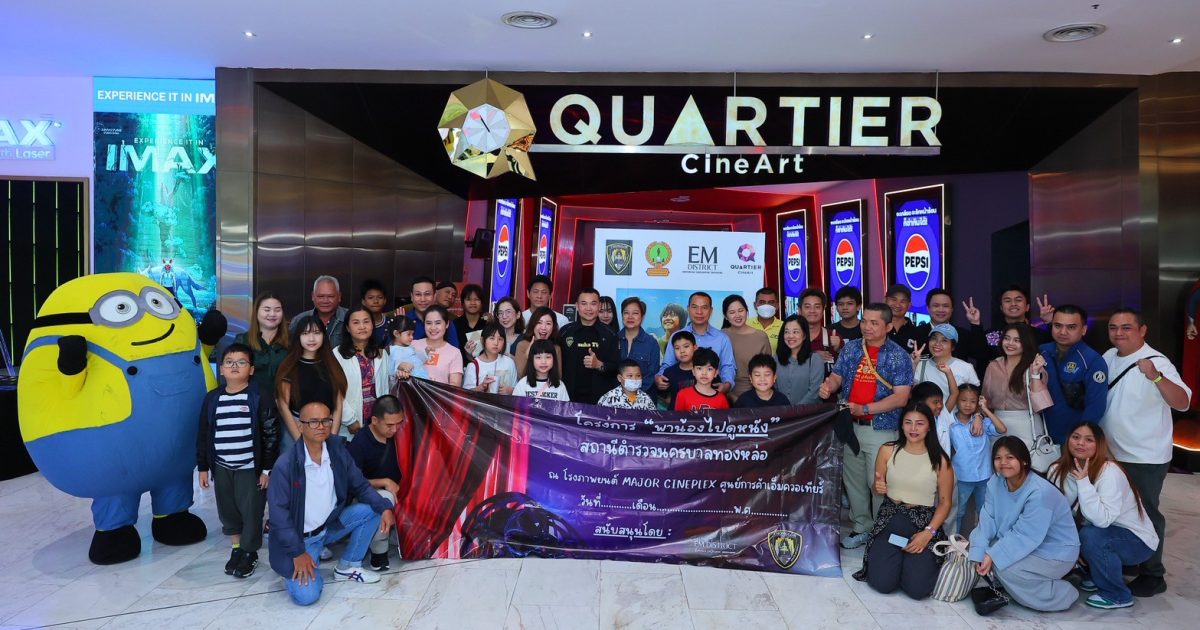 พาน้องไปดูหนัง 24/08/2568 โดย admin / ข่าวประชาสัมพันธ์,ข่าวกิจกรรม,ข่าวประชาสัมพันธ์ พ.ต.อ.รัฐธนนท์ เอกฐิติกุลพัทธ์ ผกก.สน.ทองหล่อ จัดกิจกรรมตามโครงการ พาน้องไปดูหนัง ที่โรงภาพยนต์ Guartier Cine Art ศูนย์การค้า เอ็มควอเทียร์ ตามนโยบายจัดสวัสดิการให้กับกำลังพลในสังกัด ของ พล.ต.ต.วิทวัฒน์ ชินคำ ผบก.น.5 ผบก.น.5 และเป็นประธานเปิดกิจกรรม โดยมีคุณไพพรรณ/หลักแหลม อนุ กต.ตร.บก.น.5 /ที่ปรึกษา กต.ตร.สน.ทองหล่อ กรรมการผู้จัดการ เอ็ม ดิสทริค ให้การสนับสนุนกิจกรรม