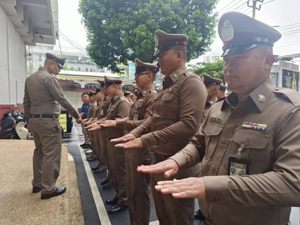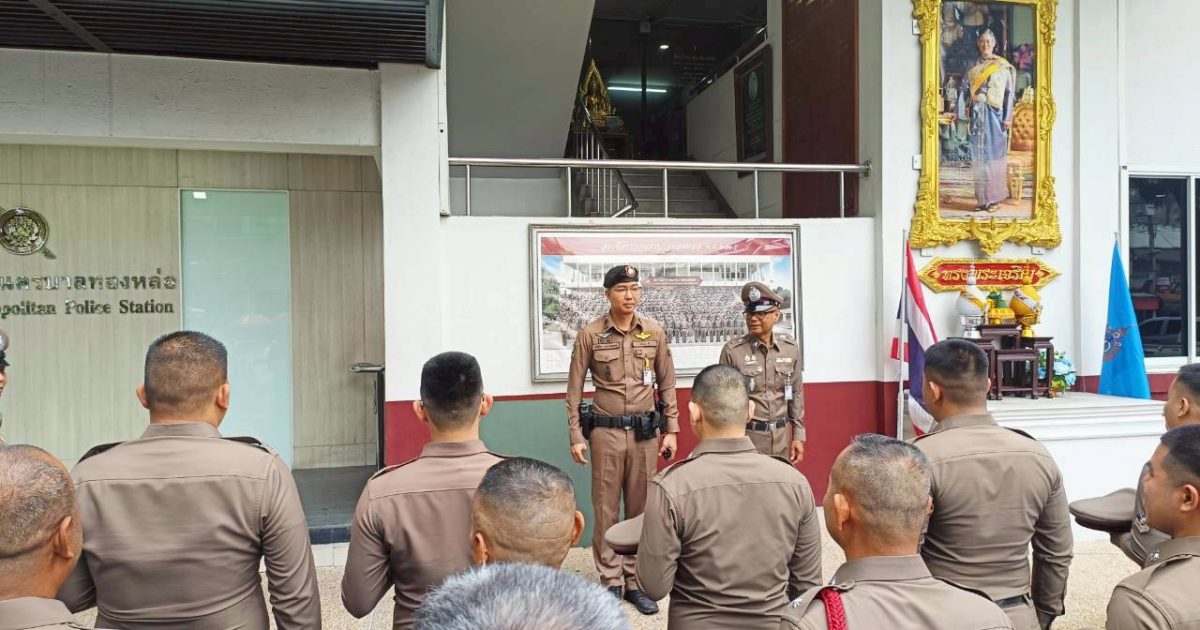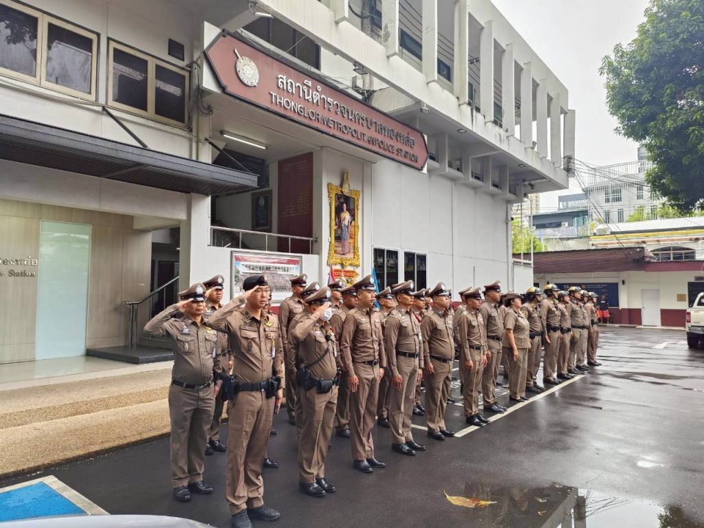 กวดขันวินัย ความประพฤติ 10/09/2568 โดย admin / ข่าวภารกิจผู้บังคับบัญชา พ.ต.อ.รัฐธนนท์ เอกฐิติกุลพัทธ์ ผกก.สน.ทองหล่อ มอบหมายให้ พ.ต.ท.สุริยา ศรชัย สว.อก.สน.ทองหล่อ พ.ต.ท.ศักดา เชขะพัฒนพล สวป.สน.ทองหล่อ พ.ต.ท.อรุณ พุทธคุณ สว.(สอบสวน) พร้อมด้วย ข้าราชการตำรวจ สน.ทองหล่อ เข้าแถวเคารพธงชาติและอบรมชี้แจงข้อราชการต่าง ๆ บริเวณหน้า สน.ทองหล่อ,ตรวจทรงผม เครื่องแต่งกาย หนวดเครา จอน เล็บ ข้าราชการตำรวจ ทุกสายงาน เพื่อให้มีความพร้อมในการปฏิบัติ หน้าที่