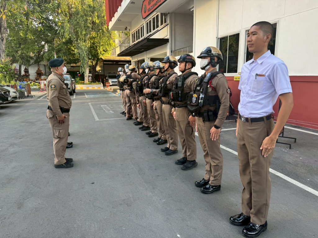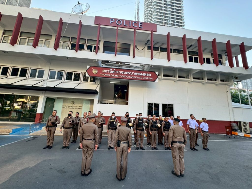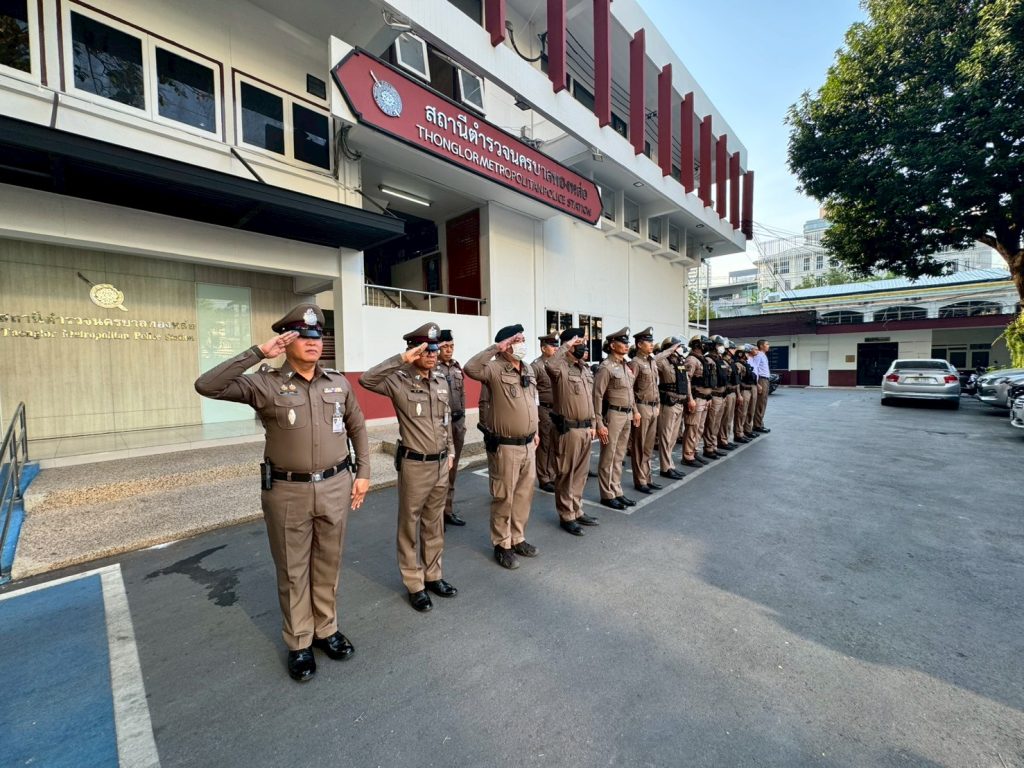 กวดขันระเบียบ วินัย ทรงผม เครื่องแต่งกาย 11/02/2569 โดย admin / ข่าวภารกิจผู้บังคับบัญชา พ.ต.อ.รัฐธนนท์ เอกฐิติกุลพัทธ์ ผกก.สน.ทองหล่อ มอบหมายให้ พ.ต.ท.สุริยา ศรชัย สว.อก.สน.ทองหล่อ พ.ต.ท.เจษฎา เกษหอม สวป.สน.ทองหล่อ พร้อมด้วย ข้าราชการตำรวจ สน.ทองหล่อ เข้าแถวเคารพธงชาติและอบรมชี้แจงข้อราชการต่าง ๆ บริเวณหน้า สน.ทองหล่อ,ตรวจทรงผม เครื่องแต่งกาย หนวดเครา จอน เล็บ ข้าราชการตำรวจ ทุกสายงาน เพื่อให้มีความพร้อมในการปฏิบัติ หน้าที่