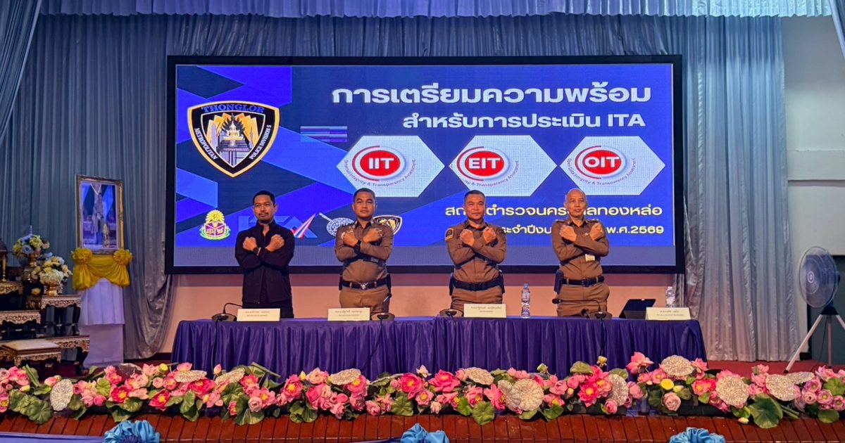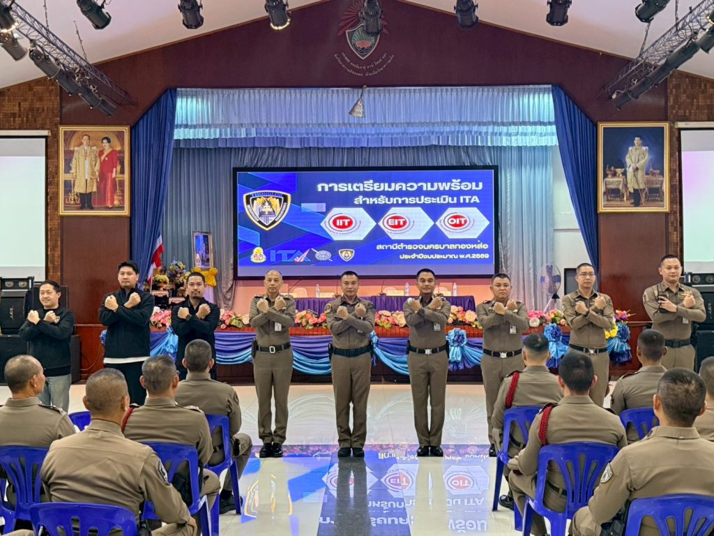 ประชุมขับเคลื่อน ITA 18/02/2569 โดย admin / ข่าวประชาสัมพันธ์,ข่าวกิจกรรม,ข่าวประชาสัมพันธ์ พ.ต.อ.รัฐธนนท์ เอกฐิติกุลพัทธ์ ผกก.สน.ทองหล่อ ได้ประชุมข้าราชการตำรวจในสังกัด สน.ทองหล่อ เพื่อขับเคลื่อนและกำกับติดตามการประเมินคุณธรรมและความโปร่งใสในการการดำเนินงานของหน่วยงานภาครัฐ (Integrity and Transparency Assessment: ITA) ประจำปีงบประมาณ พ.ศ.2569 ของ สน.ทองหล่อ เมื่อวันที่ 18 ก.พ.69 ณ หอประชุม รร.ปทุมคงคา