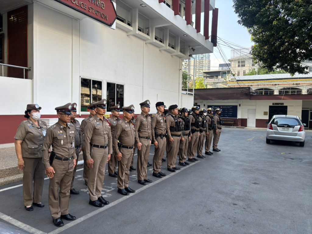 กำชับการแต่งกาย ทรงผม ข้อสั่งการผู้บังคับบัญชา 18/03/2569 โดย admin / ข่าวภารกิจผู้บังคับบัญชา พ.ต.อ.รัฐธนนท์ เอกฐิติกุลพัทธ์ ผกก.สน.ทองหล่อ มอบหมายให้ พ.ต.ท.สุริยา ศรชัย สว.อก.สน.ทองหล่อ พร้อมด้วย ข้าราชการตำรวจ สน.ทองหล่อ เข้าแถวเคารพธงชาติและอบรมชี้แจงข้อราชการต่าง ๆ บริเวณหน้า สน.ทองหล่อ,โดยกำชับให้มีความจงรักภักดีต่อชาติ ศาสนา พระมหากษัตริย์ และรัฐธรรมนูญ เน้นย้ำการแต่งกาย ทรงผม ให้ถูกต้องตามระเรียบที่ ตร.กำหนด ให้ข้าราชการตำรวจ ทุกสายงาน เพื่อให้มีความพร้อมในการปฏิบัติ หน้าที่
