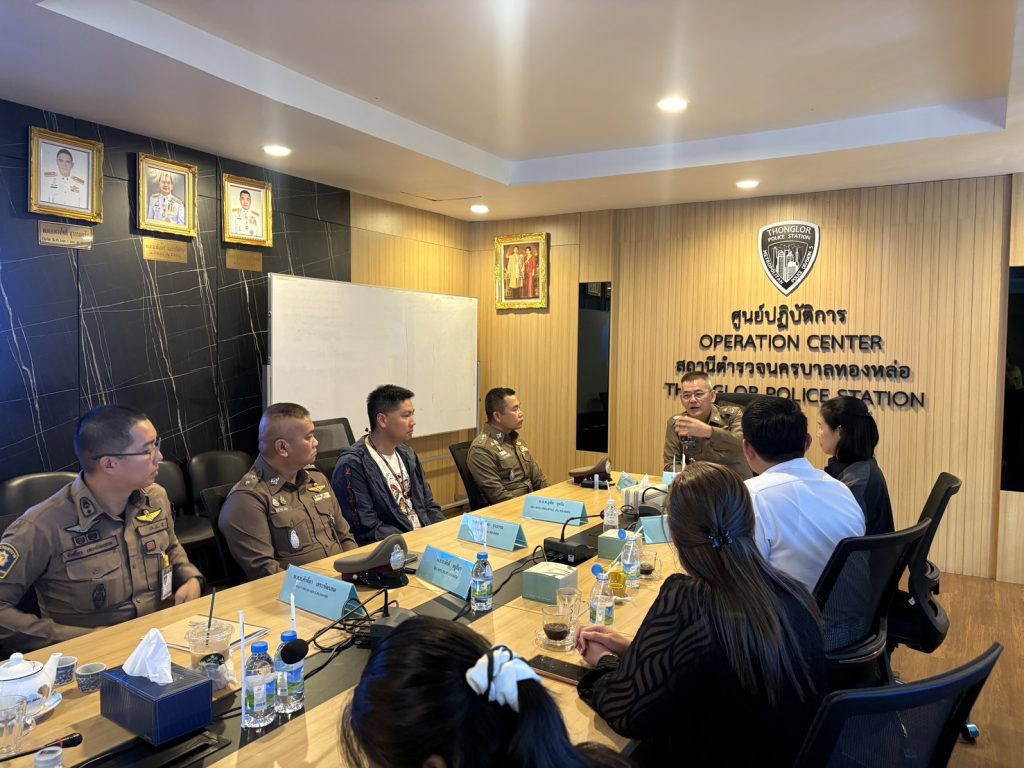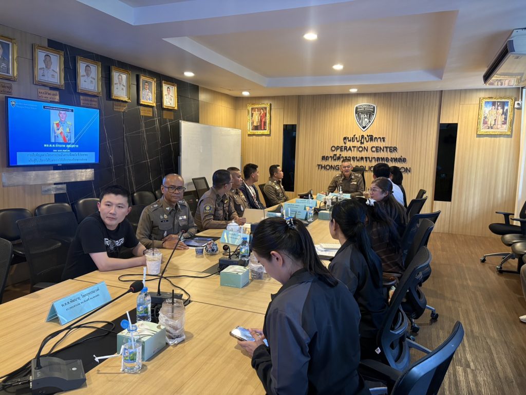 เลขะพัฒนพล สวป.สน.ทองหล่อ รรท.รอง ผกก.ป.สน.ทองหล่อ พ.ต.ท.สุริยา ศรชัย สว.อก.สน.ทองหล่อ พร้อมด้วยข้าราชการตำรวจในสังกัดกองวิจัย สยศ.ตร./นักวิจัย จากบัณฑิตวิทยาลัย มหาวิทยาลัยสวนดุสิต และเจ้าหน้าที่ที่เกี่ยวข้อง ร่วมประชุมการอำนวยความสะดวกการเก็บรวบรวมข้อมูลโครงการประเมินความพึงพอใจ ที่ประชาชนหรือผู้รับริการได้รับจากการให้บริการของข้าราชการตำรวจ ณ ห้องประชุม ชั้น 3 สน.ทองหล่อ