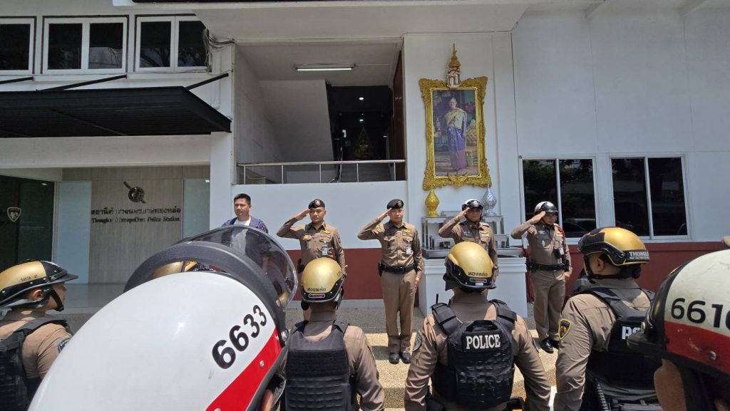 เพิ่มความเข้าการรักษาความปลอดภัยชาวอิสราเอล 01/04/2569 โดย admin / ข่าวภารกิจผู้บังคับบัญชา วันที่ 1 เม.ย.69 เวลา 13.00 น. พ.ต.อ.รัฐธนนท์ เอกฐิติกุลพัทธ์ผกก.สน.ทองหล่อ พ.ต.ท.ณัฐกิตติ์ จอกโคกสูง รอง ผกก.ป.สน.ทองหล่อ พ.ต.ท.ศักดิ์ หมู่ธิมา รอง ผกก.จร.สน.ทองหล่อ พร้อม สวป., สว.สส., สว.จร.สน.ทองหล่อ อบรมปล่อยแถวชี้แจงภารกิจรักษาความปลอดภัย เทศกาลปัสกา(Passiver) ของชาวอิสราเอลในพื้นที่จัดกิจกรรมเพื่อสวดมนต์ภายในโบสถ์และร่วมรับประทานอาหาร ณ โรงแรม Rembrandt Hotel สุขุมวิท 18 ณ ลานหน้า สน.ทองหล่อ