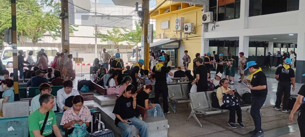 จิตอาสา 09/04/2569 โดย admin / ข่าวประชาสัมพันธ์,ข่าวกิจกรรม,ข่าวประชาสัมพันธ์ วันที่ 9 เม.ย.69 เวลา 10.00 น. พ.ต.อ.รัฐธนนท์ เอกฐิติกุลพัทธ์ ผกก.สน.ทองหล่อ มอบหมายให้ พ.ต.ท.มังกร พรหมศักดิ์ สวป.(ชส.)ฯ และชุด ชมส. สน.ทองหล่อ ร่วมกับ รร.บางมดวิทยา โดย ครู อาจารย์ ลูกเสือ และสถานี ขนส่งผู้โดยสาร กรุงเทพ (เอกมัย) ร่วมรณรงค์การขับขี่ปลอดภัย เพื่อลดอุบัติเหตุบนท้องถนนเทศกาลสงกรานต์ 2569 มอบอาหารแห้ง น้ำดื่มและหน้ากากอนามัยให้แก่ประชาชน ประชาสัมพันธ์ แจกแผ่นพับ ใบปลิว ให้แก่ผู้ขับขี่ยานพาหนะ ณ สถานีขนส่งผู้โดยสาร กรุงเทพ(เอกมัย) กรุงเทพฯ